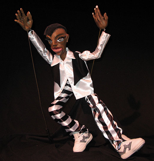 Yet even though the popular moniker The YUPPETS sticks it does not silence the disturbance Jones senses when some people encounter his in your face three foot black actors, dancers, and real life rebels for the first time. Jones is very clear that an audience is usually unprepared to be affected by something which historically has been invested with little influence with adults. Without shame he exploits it. Perhaps they would be more comfortable attending one of his matinees that he fills with the wide repertoire he has authored especially for children. It can take years or just a few months to create one puppet and there is always ten or more in progress.